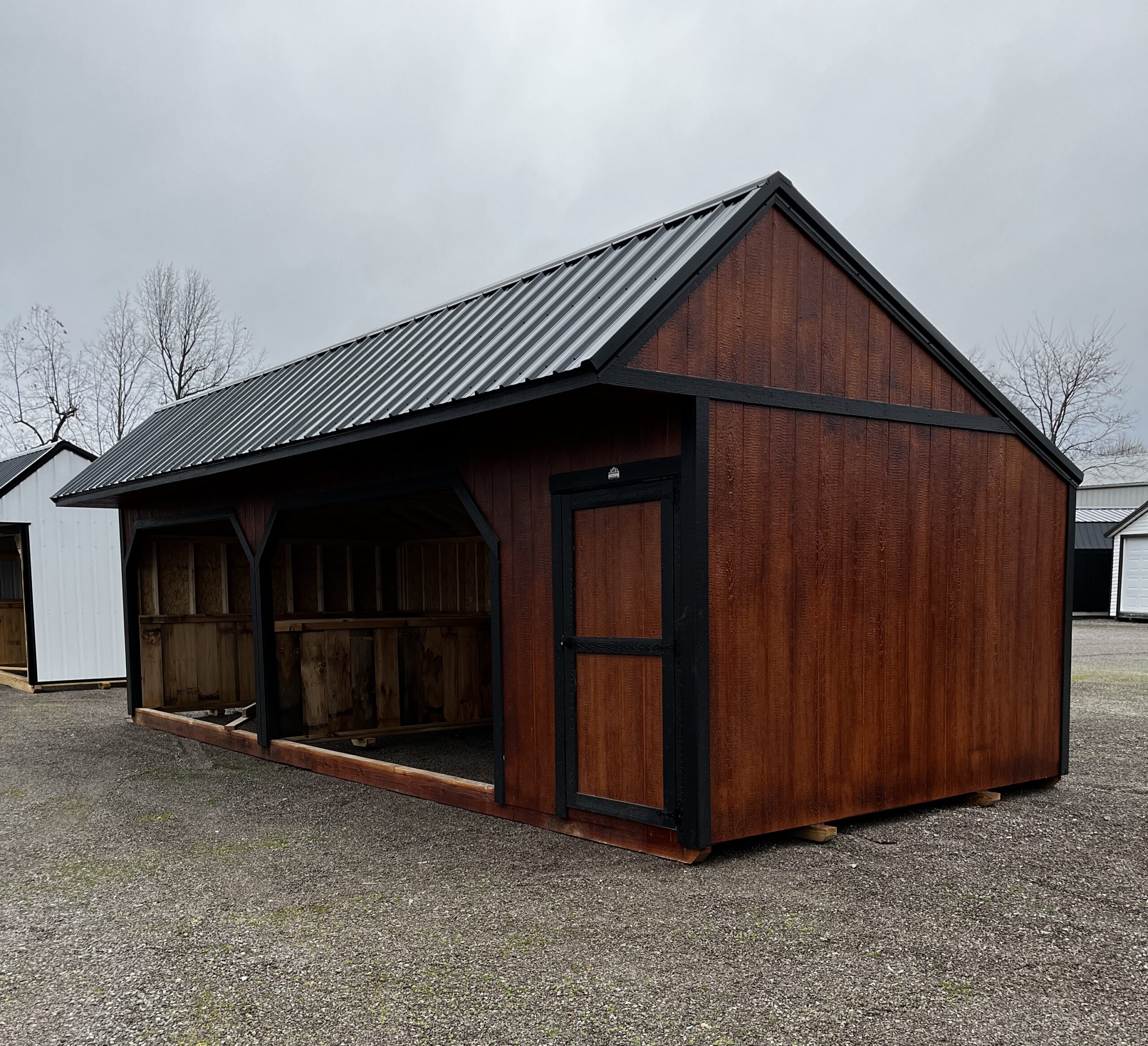 Every 12×30 Horse Barn Run-In is built to handle the unpredictable weather common in Kentucky, Tennessee, and neighboring states. We use high-quality materials like treated lumber, metal roofing, and weather-resistant siding to ensure long-lasting performance. Whether you’re facing heavy rain, snow, wind, or high humidity, you can trust that your building will hold up. Many models also include ventilation and moisture-resistant flooring to extend the life of your shed or structure.
