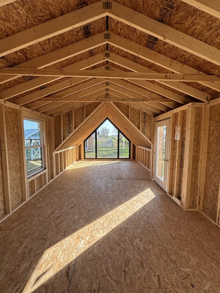 Every 14×28 Montana A-frame is built to handle the unpredictable weather common in Kentucky, Tennessee, and neighboring states. We use high-quality materials like treated lumber, metal roofing, and weather-resistant siding to ensure long-lasting performance. Whether you’re facing heavy rain, snow, wind, or high humidity, you can trust that your building will hold up. Many models also include ventilation and moisture-resistant flooring to extend the life of your shed or structure.